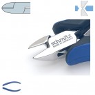 Boční štípací kleště s polooválnou hlavou, zesílené. Malá verze, s malou fasetou, rukojeť modročerná dvousložková termoplastická. Vhodné na polotvrdé a měkké vodiče.