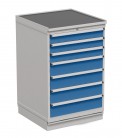 Do prostorných zásuvkových skříněk řady 70 se vejde úžasné množsví věcí. Vyberte si tu, která nejlépe vyhovuje vašim potřebám. Všechny jednotky této řady mají šířku 715 mm a k dispozici jsou dvě varianty o výšce 110 cm a 140 cm. 110 cm vysoká skříňka obsahuje kryt, který slouží jako pracovní deska s gumovou podložkou. Tato výška je totiž ideální pro práci ve stoje. Bezpečnostní zámek zabraňuje otevření dalších zásuvek, pokud máte již jednu otevřenou. Díky němu nikdy nedojde k převrácení skříňky.