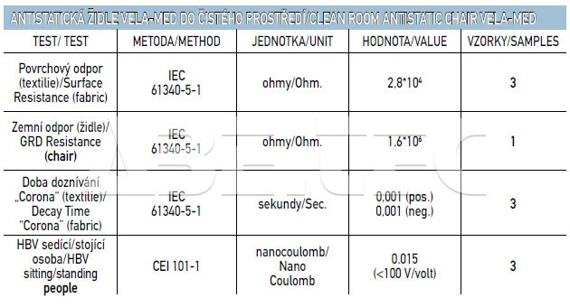 Technická data k porovnání Clean room ESD pracovní židle Intensive Use Pu-Soft Touch C–WG1872HAP