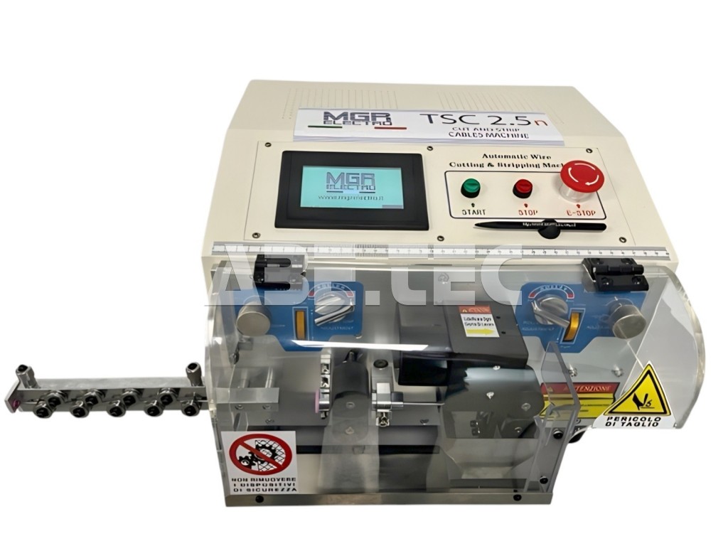 Elektronický odizolovač kabelů, který nabízí možnost zpracování unipolárních kabelů od 0,25 do 6 mm², multipolárních kabelů s vnějším průměrem do 7 mm a maximální délkou 100 metrů. Intuitivní dotyková obrazovka v italštině/angličtině, snadná výměna příslušenství, jako jsou vodítka drátu, čepele atd., a možnost uložení až 99 různých operačních programů dělají toto zařízení velmi snadno použitelným. Jeho softwarová stránka navíc umožňuje online používání a správu moderních systémů pro lisování, stohování a odvíjení/navíjení elektrických kabelů.