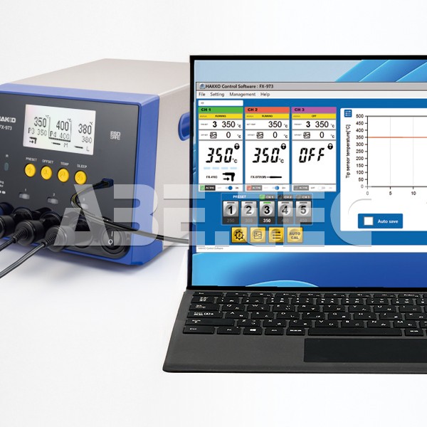 Po připojení stanice k PC se zaznamená nastavená teplota hrotu, kalibrace/korekce a historie teploty hrotu během provozu. To vše umožňuje správu s nulovou lidskou chybou.