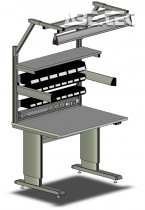 Výšku polohy stolu lze přizpůsobit imbusovým klíčem od 700 do 1100 mm. Systém nastavení na obou stranách pomocí hliníkových profilů. Plochy stolu jsou z 26 mm silného antistatického/ESD laminátu, nastavitelné nožičky poskytují jemné přizpůsobení roviny stolu. Uzemnění přes ochranný 1 megaohmový rezistor. Možnost měnit nohy za kolečka.