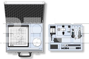 Robustní transportní kufřík z hliníku je vybaven tvarovaným čalouněním ve dvou úrovních pro většinu zařízení Optilia, např. kruhový a pravoúhlý stojan, mikroskopy Flexia a kamery W10x.
