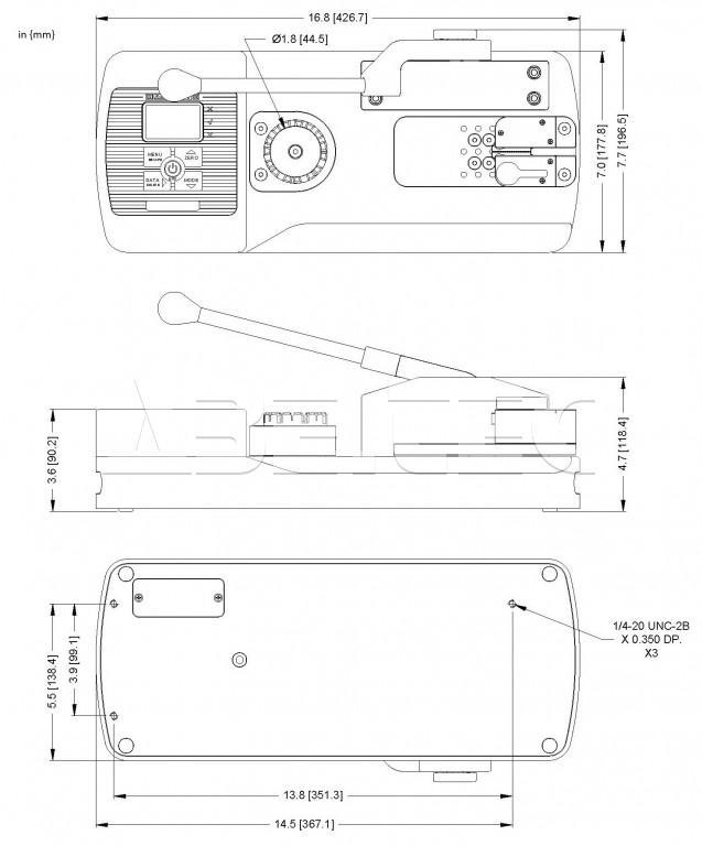 Podsvícený grafický LCD displej zobrazuje sílu v reálném čase, maximální sílu, měrnou jednotku a indikátory vyhověl/nevyhověl. Lze použít také zelený a červený indikátor vyhověl/nevyhověl. Stavový ukazatel zatížení na displeji ukazuje, kdy se blíží přetížení.