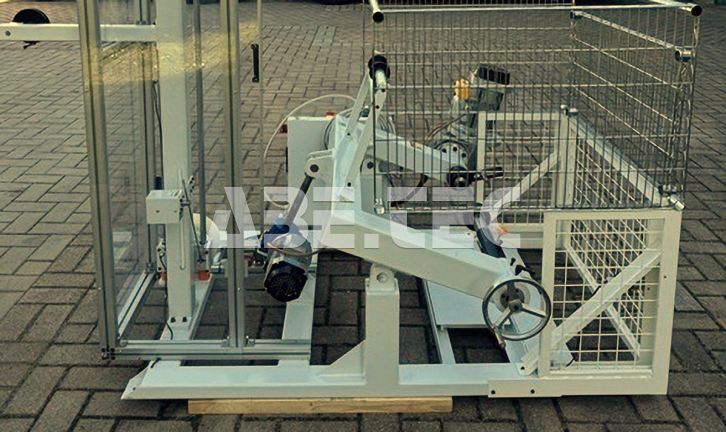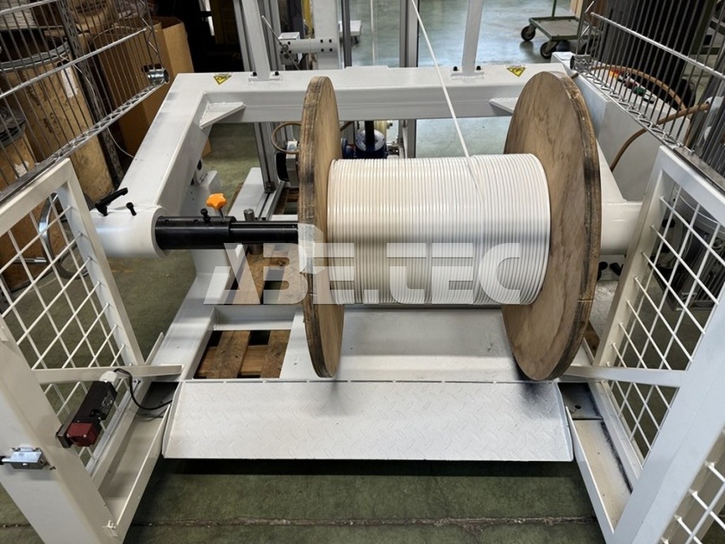 Elektrický zvedací systém a boční zajišťovací knoflík umožňují extrémně rychlou a snadnou výměnu cívek. Ochranné kryty z plexiskla a kovové síto zabraňují náhodnému kontaktu s pohyblivými částmi.