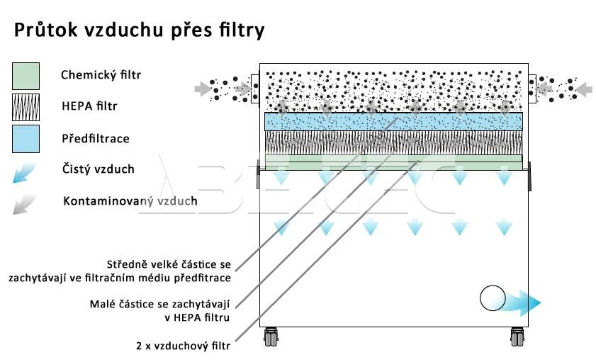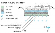 | Účinnost filtrů | předfiltr 95% u částic 0,9 mikrony, vzduchový / HEPA filtr 99,997% u částic 0,3 mikrony |