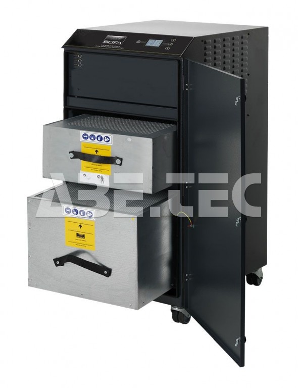 Odsávací zařízení Bofa V1000 iQ v sobě spojuje mimořádně velkou filtrační kapacitu, vysoký průtok vzduchu a tlak. Proto je ideální volbou pro náročné aplikace, které generují velké množství části a plynných organických sloučenin. Tento přístroj dokáže jako centralizovaný systém obsloužit až 15 pracovišť, nebo může být použit k extrakci výparů z automatických pájecích zařízení.