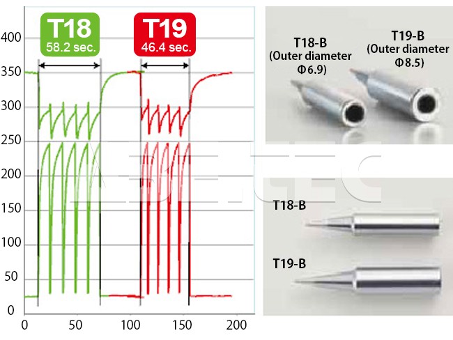 - Pájecí hrot série T19 má vylepšenou tepelnou vodivost a kapacitu.