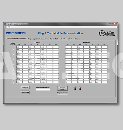 Uživatelsky konfigurovatelný adaptér, který umožňuje propojení indikátorů Mark-10 se všemi senzory síly a momentu. Kapacitu a rozlišení senzorů můžete programovat pomocí přiloženého softwarového nástroje, který zahrnuje knihovnu základních silových kapacit od 0,5 do 4000 kN (0,12 do 750000 lbF) a točivých momentů od 7 Ncm do 57 000 Ncm (10 ozFin do 40000 lbFft). Dále můžete naprogramovat identifikační číslo, které se zobrazí po zapnutí indikátoru nebo na informační obrazovce indikátoru.