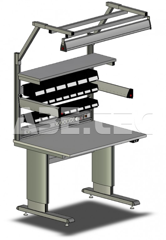 - Plochy stolu jsou z 25 mm silného laminátu, nastavitelné nožičky poskytují jemné přizpůsobení roviny stolu.