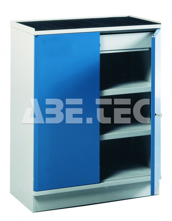 - Robustní průmyslová skladovací skříň s uzamykatelnými dveřmi.