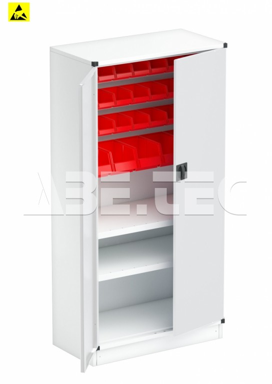 - Robustní průmyslová skladovací skříň s uzamykatelnými dveřmi v ESD provedení.