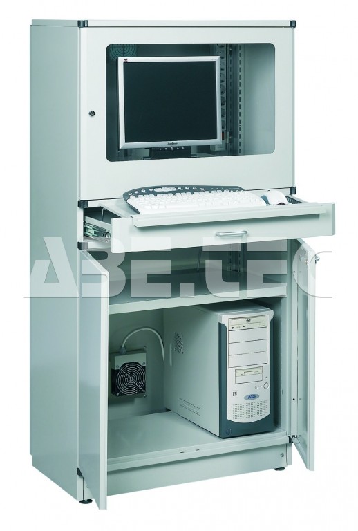 - Obsahuje prosklenou uzamykatelnou skříň na monitor, zásuvku na klávesnici a myš a spodní skříň na počítač.
