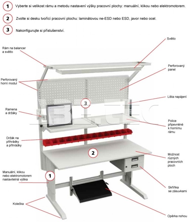 - Výška pracovní plochy: nastavitelná 675 - 1025 mm.