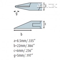 - rovná řezná hrana, velmi úzké, špičaté čelisti,