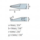 Břit bez fasety | Žádný úhel za hranou, pro měděné vodiče, snižuje nežádoucí tlak na citlivé komponenty a tlumí nárazy. |