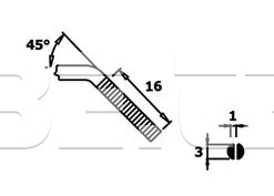 - Zoubkované kleště s dlouhými špičatými čelistmi, zahnutými do úhlu 45°.