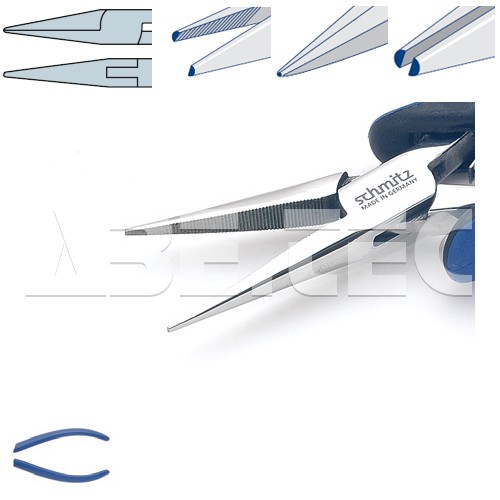 Skřipcové, přidržovací a ohýbací kleště v různých délkách, s různými rukojeťmi, velikostmi špiček, čelisti rovné nebo zahnuté, uvnitř hladké nebo zobkované. Kleště Schmitz jsou všestrannými pomocníky v elektronice a přesném strojírenství.