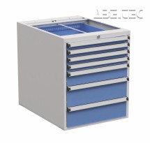 Centrálně uzamykatelké zásuvkové jednotky z vysoce kvalitní oceli nabízí prostor pro skladování nástrojů a malých součástek. Montují se pomocí držáků pod desku stolu. K dispozici jsou také verze s kolečky či soklem. Zásuvkové skříňky jsou pokryty epoxidovou ochrannou vrstvou, centrálním zamykáním a úchytkou z eloxovaného hliníku po celé šířce zásuvky.