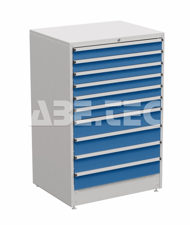 Centrálně uzamykatelké zásuvkové jednotky z vysoce kvalitní oceli nabízí prostor pro skladování nástrojů a malých součástek. Zásuvkové skříňky jsou pokryty epoxidovou ochrannou vrstvou, centrálním zamykáním a úchytkou z eloxovaného hliníku po celé šířce zásuvky. Hladké a tiché teleskopické kuličkové výsuvy poskytují snadné otevření.