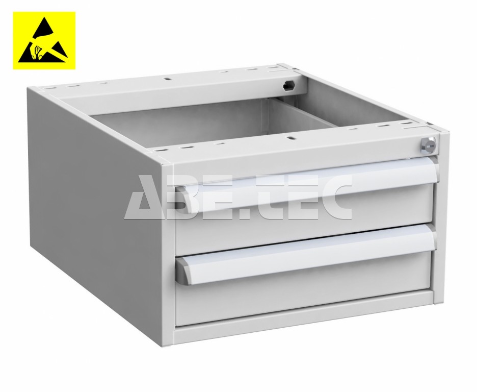 Centrálně uzamykatelké zásuvkové jednotky z vysoce kvalitní oceli nabízí prostor pro skladování nástrojů a malých součástek. Montují se pomocí držáků pod desku stolu. K dispozici jsou také verze s kolečky či soklem. Zásuvkové skříňky jsou pokryty epoxidovou ochrannou vrstvou (šedá, RAL 7035), centrálním zamykáním a úchytkou z anodizovaného hliníků po celé šířce zásuvky.