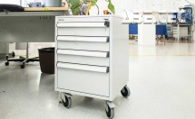 Centrálně uzamykatelké zásuvkové jednotky z vysoce kvalitní oceli nabízí prostor pro skladování nástrojů a malých součástek. Montují se pomocí držáků pod desku stolu. K dispozici jsou také verze s kolečky či soklem. Zásuvkové skříňky jsou pokryty epoxidovou ochrannou vrstvou (šedá, RAL 7035), centrálním zamykáním a úchytkou z anodizovaného hliníků po celé šířce zásuvky.